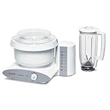 MUM6N11 - Universal PLUS Mixer with Blender and Recipe Book. Mix or process food with 800 Watts of power. 4-Speeds. Long-life motor has overload and motor start protection. A sealed oil transmission doubles the transmission lifetime. Easy-to-hold, removable drive shaft, 6.5-quart mixing bowl kneads up to 15 pounds of dough. Suction feet for stability. All current MUM6 attachments fit the new PLUS model. The MUM6N11 Bosch Universal PLUS includes a Dough Hook and set of wire Whisks for use in the mixing bowl and a Blender. The Bosch Universal PLUS Mixer is your best choice for making bread dough in your own kitchen. It also has the power and ability to operate several attachments from the previous Bosch Universal model, such as a blender, food processor, slicer/shredder, meat grinder, and the Family Grain Mill (with its adapter). Not only can you make pizza dough in your Bosch Universal Plus mixing bowl, but the sauce, vegetables, and shredded cheese toppings too (using Bosch mixer attachments). Read more