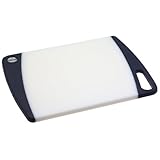 Poly Board Blue 11 Inch x 14 InchThis heavyweight, 14-by-11-inch cutting board is made of durable polypropylene and has textured, durable Santoprene handles on both ends to ensure a secure grip with wet hands and to anchor the board to a countertop. Double-sided so it can be used hygienically for both meat and vegetables without needing a wash during a single meal's preparation, the board is dishwasher-safe and thick enough to withstand abuse. One handle has a hanging hole to facilitate storage on hook or peg. KitchenAid says the first year of the board's lifetime warranty against defects is hassle-free, with a replacement shipped at no cost and without question if a defect is detected. --Fred Brack Read more