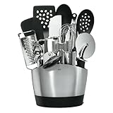 Have all your essential kitchen tools in quick reach with OXO GOOD GRIPS 15 Piece Everyday Kitchen Tool Set. With our slim-lined, space efficient Stainless Steel Utensil Holder, you'll be able to store a collection of OXO's most important every day kitchen tools and gadgets. This set includes our Stainless Steel Utensil Holder which holds our Nylon Flexible Turner, 12" Tongs with Nylon Heads, Nylon Square Turner, Nylon Spoon, Nylon Slotted Spoon, Grater, Swivel Peeler, Ice Cream Scoop, Potato Masher, Soft-handled Can Opener, 11" Balloon Whisk, Silicone Spatula, Meat Tenderizer and a 4" Pizza Wheel. Whether it's your first set of kitchen tools or enhancing your current set, the OXO 15 Piece Everyday Kitchen Tool Set will bring value, function and style to any kitchen. Read more