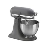 The tilt-head feature and generous 4-1/2-quart capacity make the KitchenAid Stand Mixer the ultimate in user-friendly design. Features 10 speeds and KitchenAid's unique planetary mixing action, driven by a powerful 300-watt motor. Rugged all-metal construction ensures long life and quiet operation, and rubber feet anchor it securely while in use. This mixer has a 4-1/2-quart stainless steel bowl, with ergonomic handle and clear plastic pouring shield, but it can also accommodate the 3- and 5-quart bowls. Read more