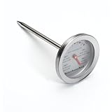 Stainless steel meat thermometer features a dial that clearly shows temperatures from 140 to 180 degrees. A guide to temperatures for various meats and poultry is printed on the dial for convenient reference. Read more